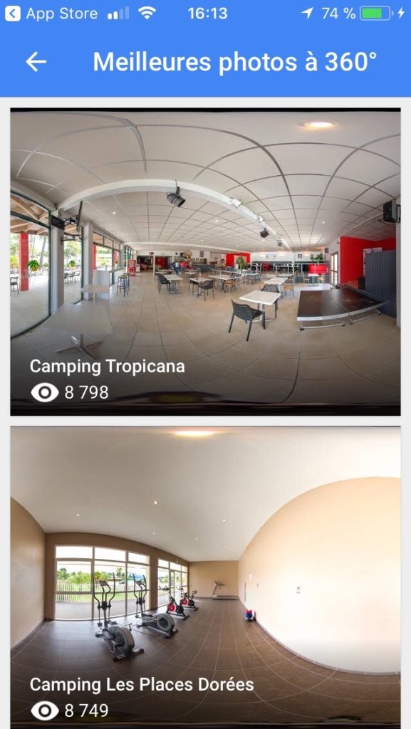 Nous intégrons également les 360° au sol à Google Strret View afin d’augmenter votre référencement naturel. Vous pourrez voir sur l’extrait de statistiques suivants que certaines photos ont été vues plus de 8000 fois depuis le mois de juin.
